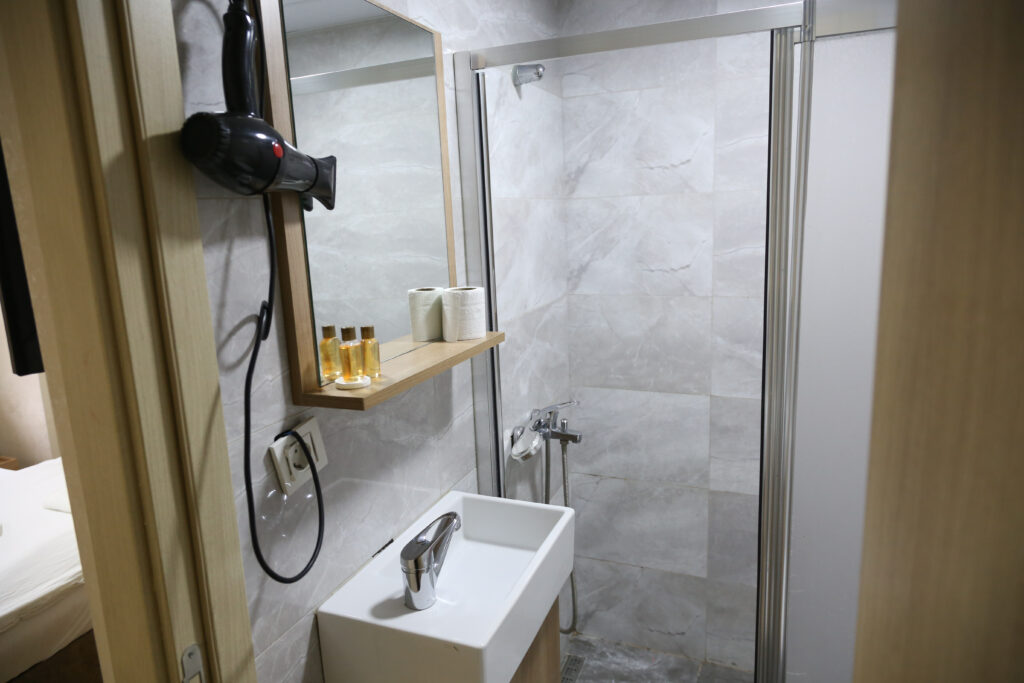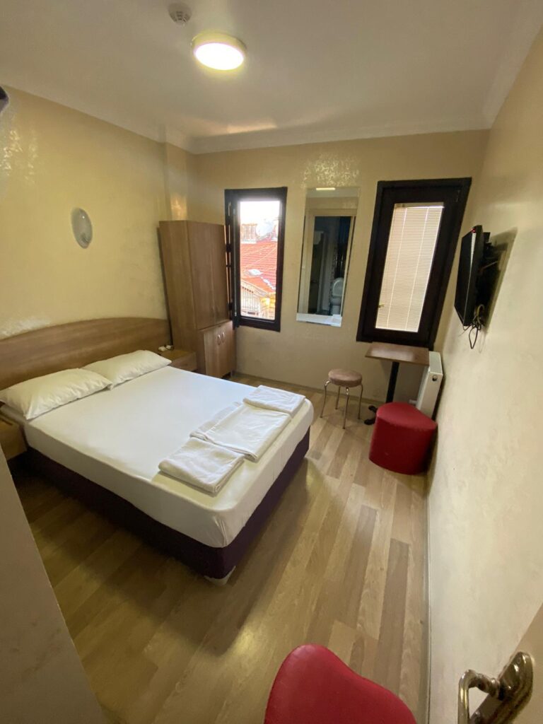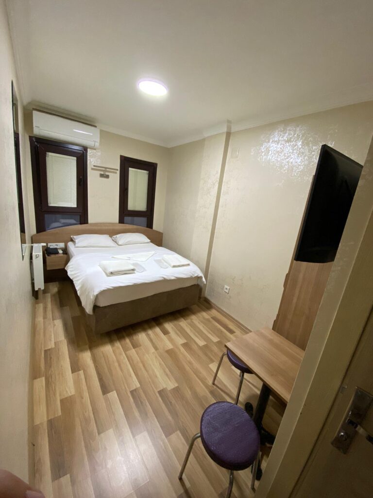 Çift kişilik odalarımız 14 m² genişliğinde olup, minimum metrekareyle maksimum konforu sağlamayı hedeflediğimiz, özenle dekore ettiğimiz odalardır. Bu odalarda konakladığınız taktirde sunduğumuz olanaklar ; • Klima • TV • 7/24 sıcak su • WİFİ • Banyo • Masa ve tabureler • Çift kişilik yatak • Komodinler • Gardırop